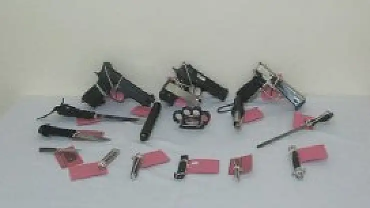 Alınan bilgiye göre, Asayiş Şube Müdürlüğüne bağlı güven timleri, Baraj Yolu'nda durumundan şüphelendikleri S.D'nin (19) sırt çantasında arama yaptı. Lise son sınıf öğrencisi olduğu ve bir barda çalıştığı öğrenilen S.D'nin sırt çantasında 1'i bilye atar 3 kurusıkı tabanca, 8 bıçak, 2 muşta ve 2 cop buldu.Gasp Büro Amirliği ekiplerince ifadesi alınan S.D'nin, merakından bu malzemeleri taşıdığını söylediği öğrenildi.Emniyetteki işlemleri tamamlanarak adliyeye sevk edilen S.D, savcılıkta ifadesinin alınmasının ardından serbest bırakıldı.