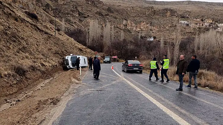 KAYSERİ'nin Yeşilhisar ilçesinde, yağış nedeniyle kayganlaşan yolda sürücüsünün kontrolünden çıkan öğrenci servisinin devrildiği kazada, 10 öğrenci yaralandı.