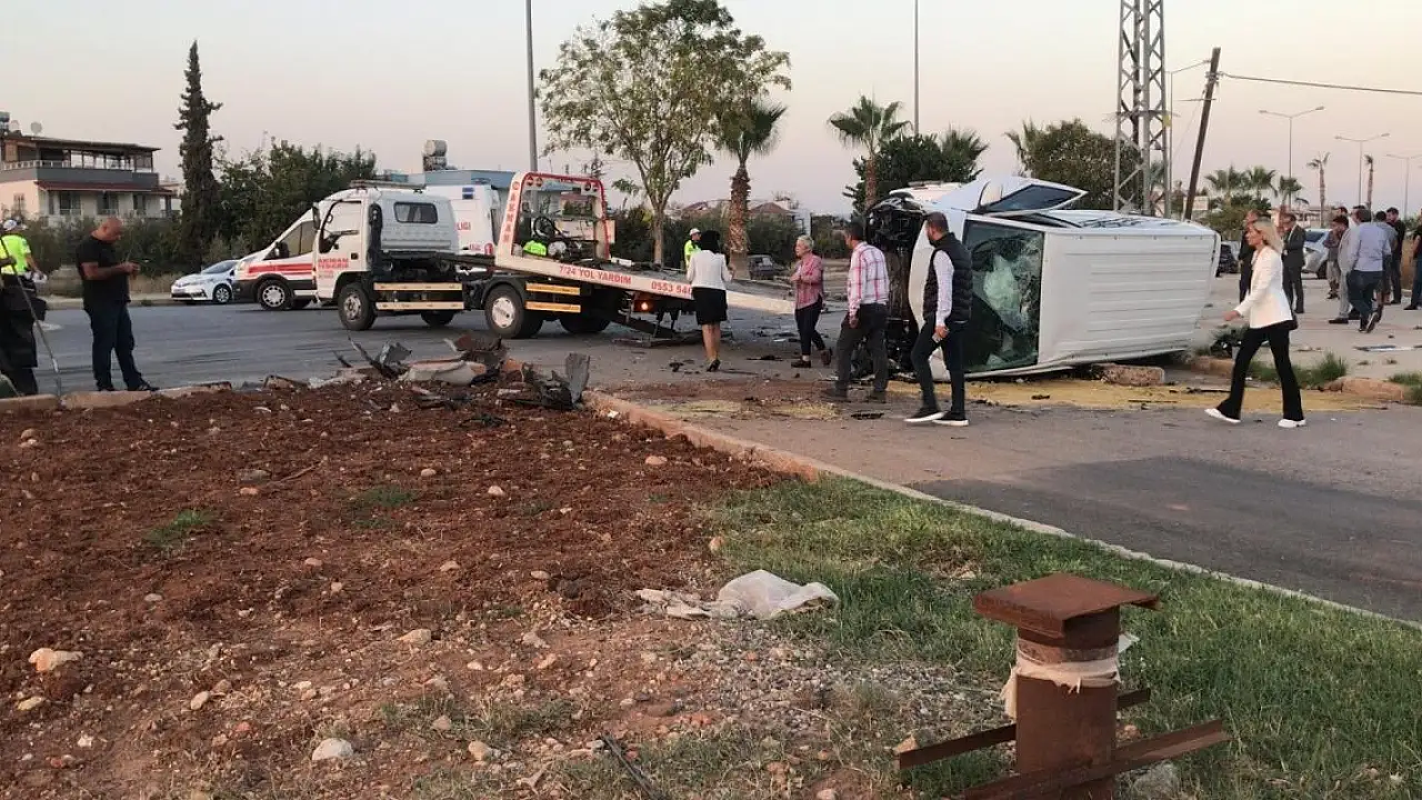 MERSİN'de, öğrenci servisinin otomobille çarpışıp devrildiği kazada 6'sı çocuk 7 kişi yaralandı.