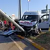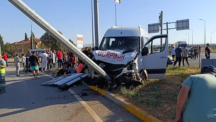 Daha sonra kavşağa girmek için bekleyen S.Y. idaresindeki 20 AIR 265 plakalı araca da çarpan öğrenci servisi, refüje çıkıp aydınlatma direğine çarparak durabildi.