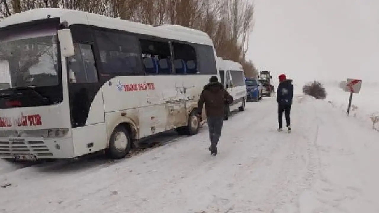K.Ö. yönetimindeki öğrenci servisi ile A.Ç. idaresindeki içerisinde öğrenci bulunmayan servis, Kargın-Çırçır köyü yolunda kar yağışı ve tipi nedeniyle çarpıştı.
