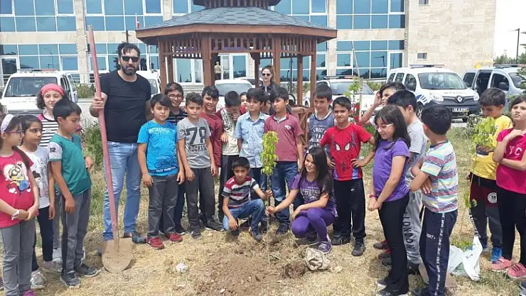İlçe Emniyet Müdürü Kasım Özdemir, ilkokul öğrencilerinin davranışlarından çok duygulandığı ifade ederek, çocuklara fidanları dikmeleri için emniyetin bahçesinde yer gösterdi.