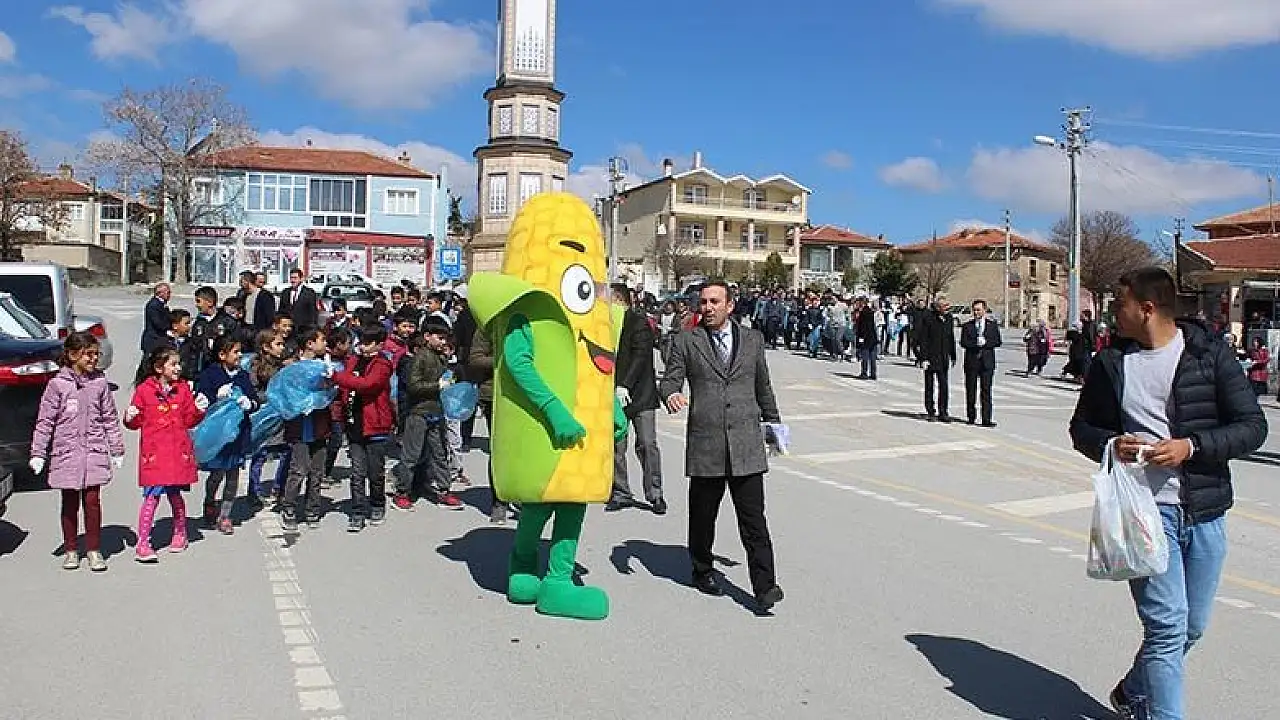 Bu kapsamda, Yunak Kaymakamlığı ve kaymakamlığa bağlı birimler, ilçede çevre temizliği ve geri dönüşüm konusunda farkındalık oluşturmak amacıyla öğrencilerle birlikte YUNÇO (Yunak çocuk) adlı tane mısır temalı maskot eşliğinde yürüyüş düzenledi.