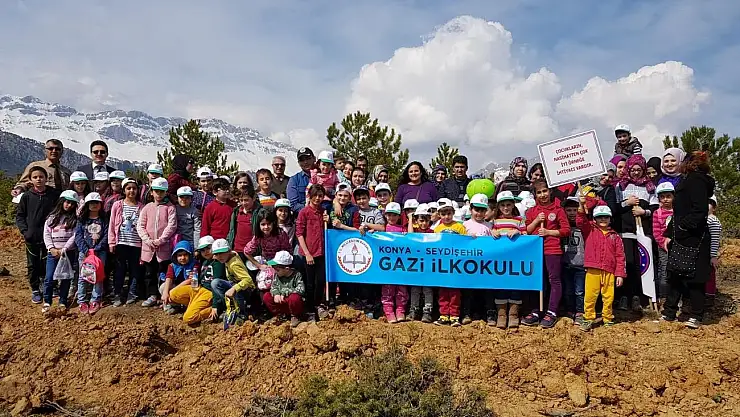 Seydişehir'de Gazi anasınıfı ve ilkokul öğrencileri, ağaç dikme etkinliğinde buluştu.