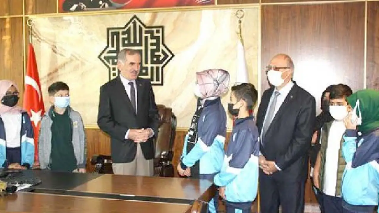 Selçuklu İMKB Ortaokulu öğrencileri, Camiler ve Din Görevlileri Haftası münasebetiyle Selçuklu Müftüsü Bekir Derin'i makamında ziyaret ettiler.