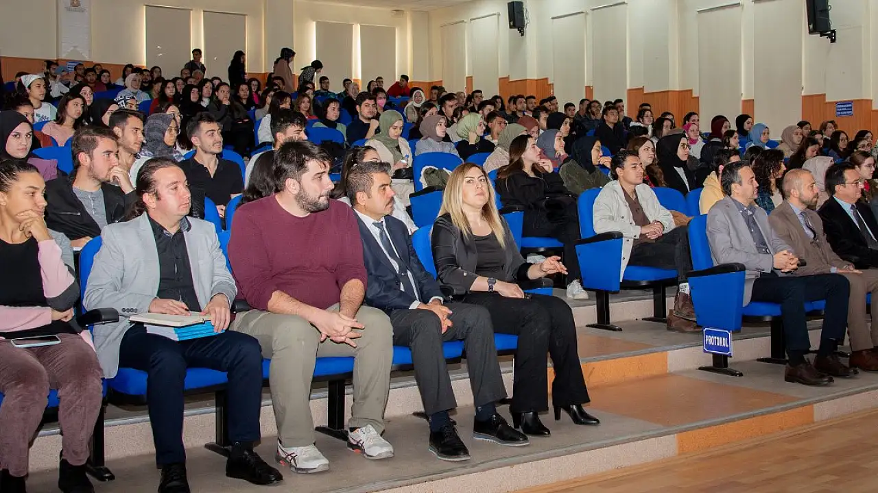 Dr. Öğr. Üyesi Tamer Bozkurt, Fakültenin konferans salonunda düzenlenen konferansta liseden mezun olan öğrencilerin hukuk disiplinine alışmakta zorlandığını söyledi. Bu konu üzerine çalışmalarda bulunduğunu ifade eden Dr. Öğr. Üyesi Bozkurt, hukuk fakültesi öğrencilerinin ilk olarak hayatı disipline etmeye başlaması gerektiğini aktardı. Bozkurt, hukukun bir kültür olduğunu belirterek alana farklı bakış açılarıyla yaklaşmanın değerini vurguladı.