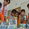"Süt içmeyen öğrencilere sütü nasıl sevdiririz?" düşüncesiyle yola çıktıklarını belirten Yağlı, öğrencilerden içtikten sonra boş süt kutularını getirmelerini istediğini anlattı.