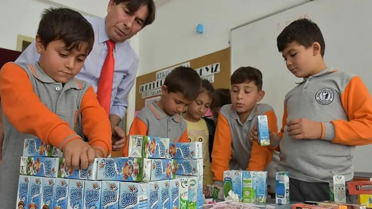 Kemalpaşa İlkokulu'nda öğretmen olarak görev yapan Yağlı, geçen yıl Okul Sütü Programı kapsamında öğrencilerin içtiği sütlerin kutularını getirmelerini isteyerek, onlarla çalışma yapacağını söyledi.