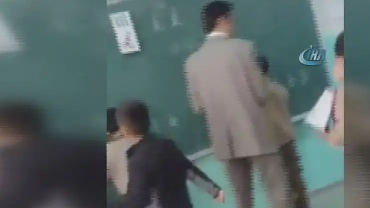 Ümraniye'de bir ilkokulda öğrencilerinin tahtaya yazı yazamamasına sinirlenen öğretmen, öğrencilerine dayak attı. O anlar bir öğrencinin cep telefonu kameralarına saniye saniye kaydedildi.