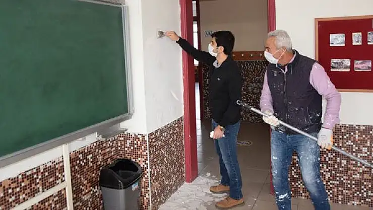 Konya'nın Kulu ilçesinde, Mevlana İlkokulu idarecileri ve personeli, eğitim ve öğretimin uzaktan devam ettiği süreçte boya, badana ve sınıfların bakımını yaptı.