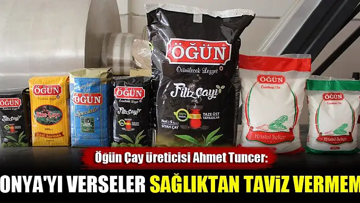 Öğün Çay üreticisi Ahmet Tuncer, 'Sağlık açısından zararlı hiçbir ürünü ürettiğim çayda kullanmam. Kendi içmeyeceğim ürünü satmam. Konya'yı verseler de yine sağlıktan taviz vermem' dedi.