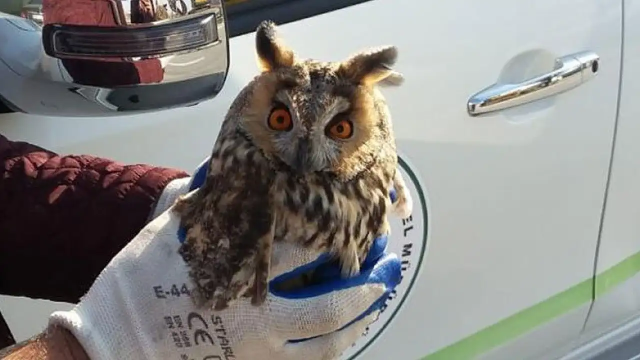 Okul bahçesinde yaralı kulaklı orman baykuşu bulundu