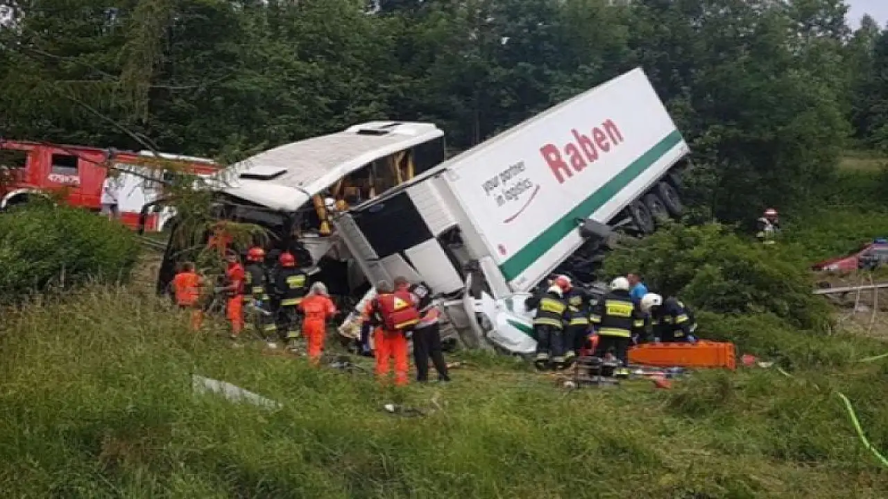 Okul gezisi için Zakopane kentine giden öğrencileri taşıyan servis, dönüş yolunda karşıdan gelen bir kamyonla çarpıştı.