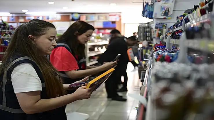Ticaret Bakanlığı ekipleri okul alışverişlerinin yapıldığı başta zincir marketler ve kırtasiyeler olmak üzere perakende ürün satışı yapılan işletmelerde fiyat etiketi denetimi yaptı.