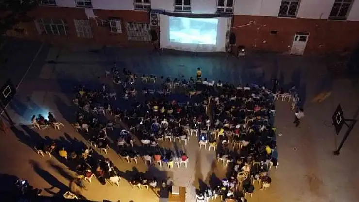 Adana'nın Kozan ilçesinde öğrenciler, aileleriyle birlikte okullarının bahçesinde açık hava sinema keyfi yaşadı.