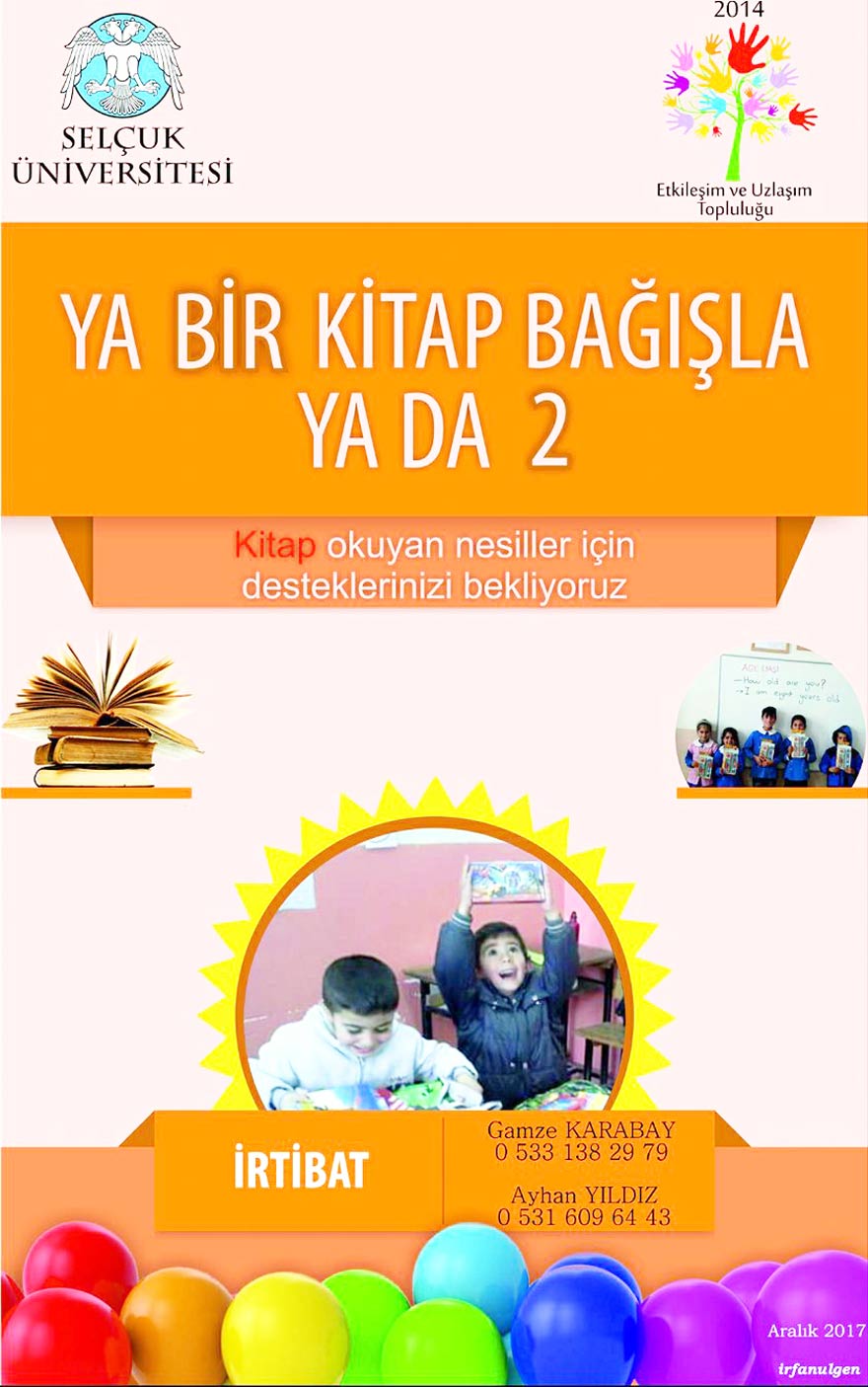 Selçuk Üniversitesi Etkileşim ve Uzlaşım Topluluğu tarafından düzenlenen “Ya Bir Kitap Bağışla Yada 2” projesi ile Türkiye’nin dört bir yanından gelen taleplere göre ortaokul ve lise düzeyinde öğrencilere kitap gönderiliyor. Etkileşim ve Uzlaşım Topluluğu Başkanı Gamze Karabay kampanyayı her sene ortaokul ve lise düzeyinde öğrenciler için kitap okuyan nesilleri artırmak için düzenlediklerini söyledi.