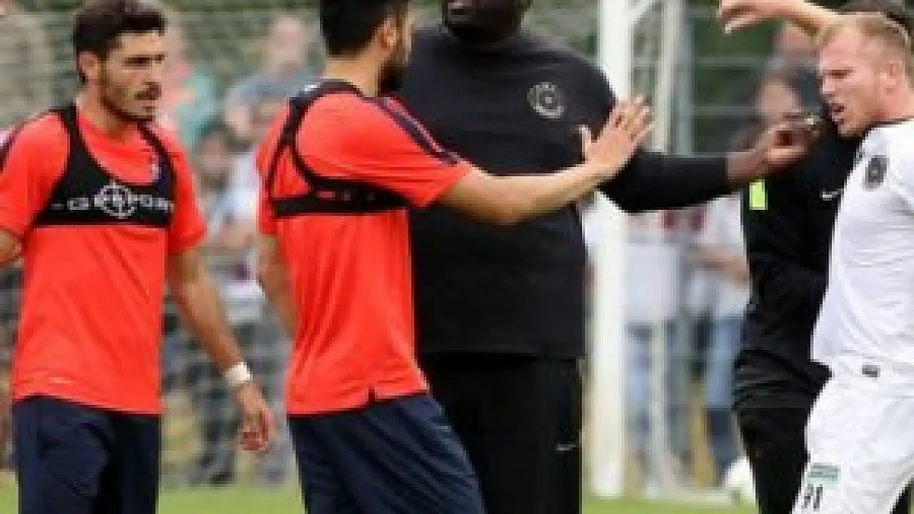 Orta alanda yaşanan bir faul pozisyonunda Mustafa Yumlu'nun, oyun durduktan sonra sert bir şekilde vurduğu topun yerde yatan rakip oyuncu Samuel Fabris'e çarpması sonucu saha bir anda karıştı. Her iki takımın teknik direktörleri sahaya girerek tartışan ve itişen oyuncuları sakinleştirmeye çalıştı. Karşılaşmanın hakeminin tavsiyesi üzerine gerginliğin daha büyümemesi için teknik direktör Arveladze, Mustafa Yumlu'yu saha kenarına alarak Aykut Demir'i oyuna soktu.