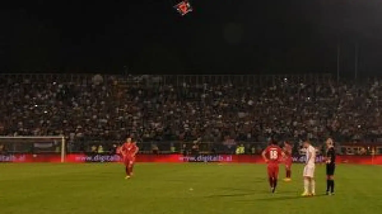 Sırbistan ile Arnavutluk arasında dün akşam oynanan karşılaşmanın 44. dakikasında uzaktan kumandalı bir helikopterle sahaya Kosova'yı da kapsayan ''Büyük Arnavutluk haritası"nın yer aldığı bayrağın bırakılması üzerine olaylar çıkmıştı.