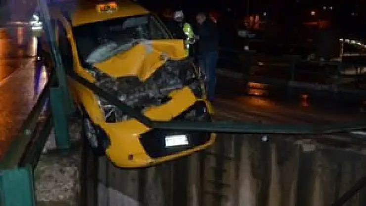 Bursa'da yağmurlu havanın da etkisiyle virajı alamayan ticari taksi az kalsın köprüden aşağı düşüyordu.