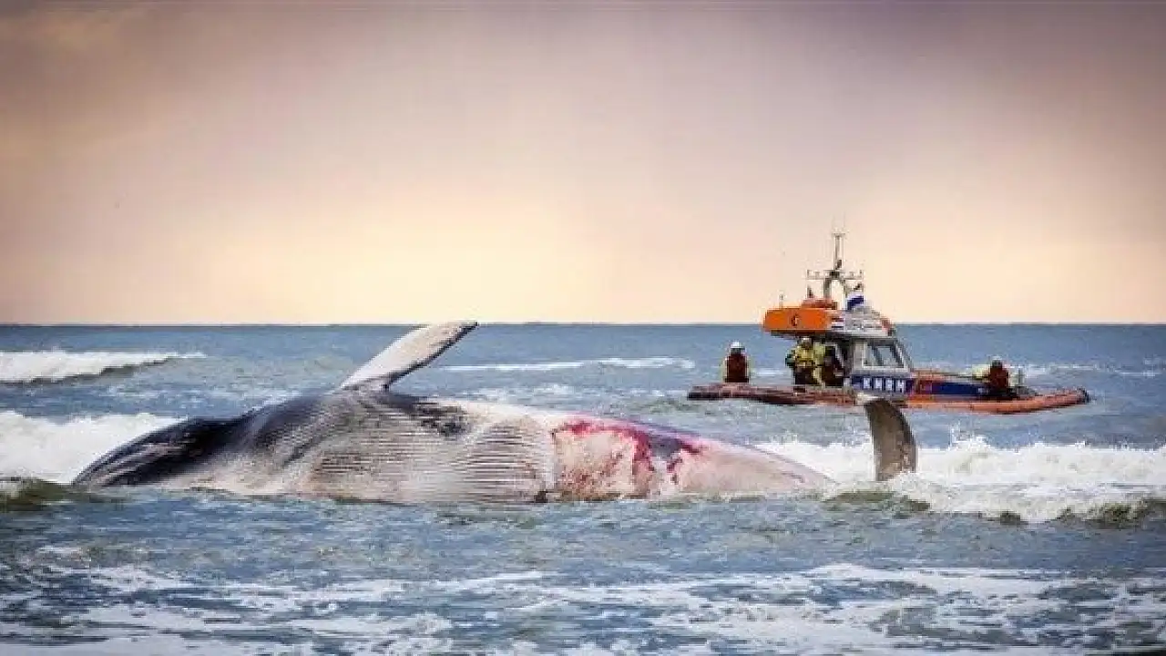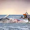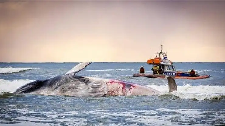 Hollanda'da telef olduğu belirlenen dev balina Lahey kenti yakınlarındaki Katwijk kasabasındaki sahile çekildi.