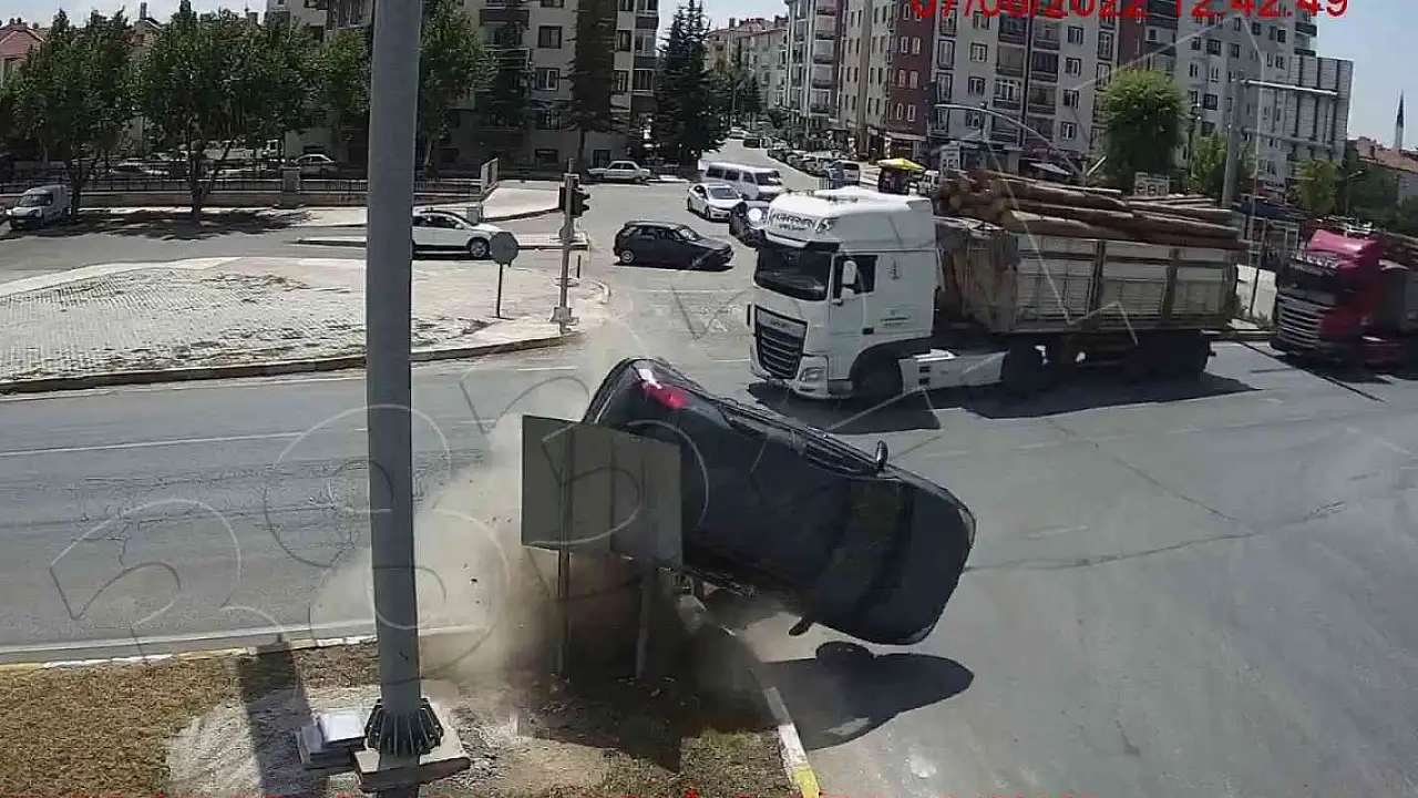 Kaza, bölgede bulunan KGYS görüntülerine yansıdı. Görüntülerde kavşakta diğer araçlar beklerken karşıya geçmeye çalışan otomobil, önce kamyona çarpmaktan son anda kurtuluyor. Önüne aniden çıkan araç nedeniyle kamyon şoförü fren yapıp beklerken, otomobil karşı şeride geçmek için yoluna devam ediyor. Bu sırada Samsun istikametine seyir halinde olan otomobil diğer araca çarpıyor. Çarpışmanın etkisiyle savrulan otomobil takla atarak orta refüjde bulunan tabelalara çarparak duruyor.