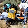 İhbar üzerine gelen 112 Acil Servis ekipleri yerde yatan yarılıya ilk müdahaleyi olay yerinde yaptı. Ekipler, yaralı işçiyi ambulansa taşımakta zorlanınca yardıma gazeteciler koştu. Habercilerin yardımıyla ambulansa alınan Çetinkaya, özel bir hastaneye kaldırıldı.