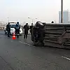 Şişli Piyalepaşa Bulvarı bağlantı yolunda bir araç, kayganlaşan yolda sürücüsünün direksiyon hakimiyetini kaybetmesi sonucu bariyerlere çarparak yan yattı. Metrelerce sürüklenen aracın içerisinden hafif yaralı olarak kurtulan 3 arkadaş, kaza yerinde aracın plakasını aradı.