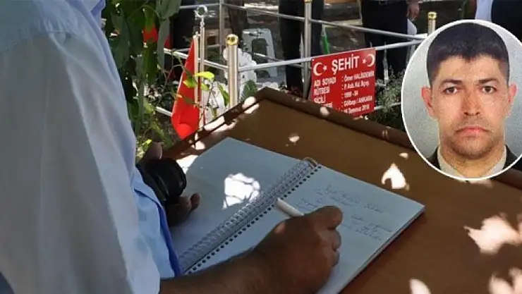 FETÖ'nün 15 Temmuz'daki darbe girişimi sırasında, Ankara'da Özel Kuvvetler Komutanlığında darbeci generali vurduktan sonra şehit olan Piyade Astsubay Kıdemli Başçavuş Ömer Halisdemir'in Niğde'deki kabrini ziyarete gelenler, duygularını anı defterine de yazıyor.