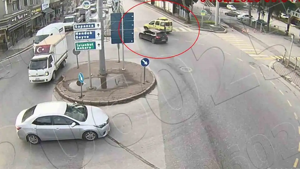 Sakarya'nın Adapazarı ilçesinde kırmızı ışıkta bekleyen otomobile, aynı istikamette seyir halinde olan minibüsün çarpması ve ardından olay yerinden kaçması kameralara yansıdı.