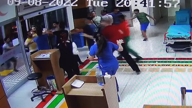 Edinilen bilgiye göre olay, Şanlıurfa'nın Karaköprü ilçesindeki özel bir hastanenin acil servisinde yaşandı. İddiaya göre, Ayşegül A. isimli kadın, kocası Yaşar A. tarafından darp edildi. Ambulansla hastaneye götürülen kadının peşinden giden koca Yaşar A. ile yakınları Mehmet A. ile Turgut A., acil serviste tedavi altına alınan Ayşegül A.'nın yanına giderek iddiaya göre adli rapor hazırlanmasını engellemeye çalıştı. Güvenlik görevlisinin öfkeli koca ile yakınlarının kadına yaklaşmasına izin vermemesi üzerine arbede yaşandı. Yaşanan arbedede öfkeli koca ile yakınları güvenlik görevlisi ile gece nöbetinde olan erkek hemşireyi darp etti. Olay yerine çağrılan polis ekipleri koca ile 2 yakınını gözaltına aldı. Sağlık görevlileri ise başka bir hastaneden darp raporu aldıktan sonra saldırganlardan şikayetçi oldu. Güvenlik kamerasına da yansıyan olayda hastaneye girmeye çalışan şahısların sağlık çalışanlarını darp ettiği ve bu esnada diğer sağlık çalışanlarının kapıyı kapatarak içeri girmelerini engellemeye çalıştıkları ve acilin camının kırdığı gözlendi. Olayla ilgili soruşturma devam ediyor.