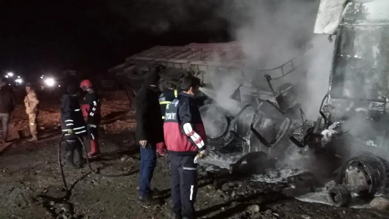 IĞDIR'da minibüse çarptıktan sonra şarampole devrilerek yanan TIR'ın sürücüsü hayatını kaybetti. Kazada 2 kişi de yaralandı.