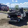 Sakarya'nın Karasu ilçesinde "patpat" olarak tabir edilen tarım aracına çarpıp kontrolden çıkarak refüjdeki direğe çarpan otomobil takla attı. Kazada 4 kişi yaralandı.