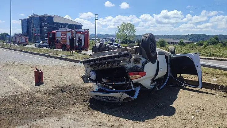 Sakarya'nın Karasu ilçesinde 'patpat' olarak tabir edilen tarım aracına çarpıp kontrolden çıkarak refüjdeki direğe çarpan otomobil takla attı. Kazada 4 kişi yaralandı.