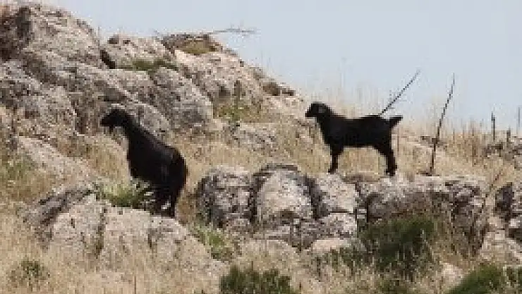 HAYVANLAR ADADAKİ OT VE BİTKİ ÖRTÜSÜYLE BESLENİYOR