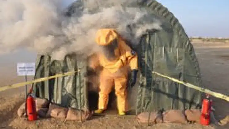 Maskesini takarak gerekli hazırlığını yapan personel, içine göz yaşartıcı gaz atılan maske güven çadırına alınıyor. Amaç, personelin en iyi şekilde hazırlandıktan sonra bölgeye gitmesini sağlamak. Maskesini iyi takamayan personel gaza maruz kaldığı için hemen kendisini dışarıya atıyor. Bu eğitim, personelde maskenin önemini anlamasını sağlıyor.