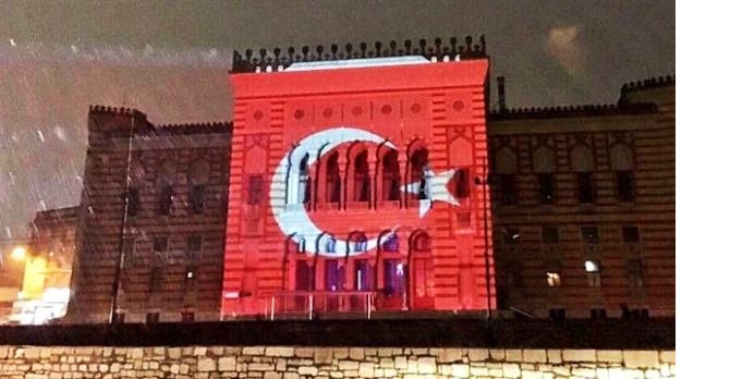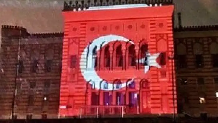 Bosna Hersek'in başkenti Saraybosna'nın en önemli sembollerinden VijecnicaKütüphanesi, Ankara ve İstanbul'daki terör saldırıları sonrası Türk bayrağının renkleriyle ışıklandırıldı.