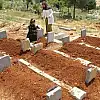 Merkez Şehitkamil ilçesi Taşlıca Mahallesi kırsalındaki toprak evde önceki gün çıkan yangından yaralı kurtulan Naciye Bakır, yaşamlarını yitiren eşi Mehmet Emin Bakır ile çocukları Mücahit (13), Halime (12), Dilovan (7), Büşra (6), Emin (5) ve Tacettin'in (2) defnedildiği Yeşilken Mezarlığı'na gitti.
