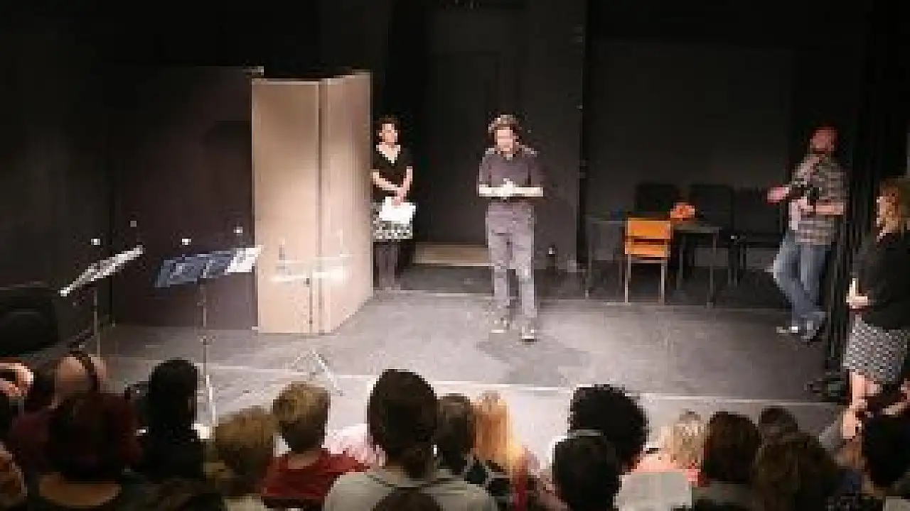 Oyun öncesi seyircilere hitap eden proje koordinatörü Mustafa Akça, Berlin'de doğduğunu ancak aslen Yozgatlı olduğunu söyledi.