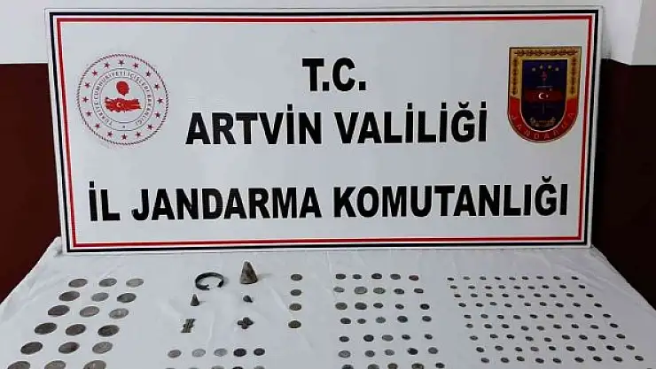 Artvin'de jandarma ekipleri tarafından düzenlenen operasyonla 175 adet tarihi eser niteliği taşıyan sikke ve 6 adet metal obje ele geçirildi.
