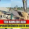 Iğdır'da sulama kanalına düşen büyükbaş hayvanın kepçe operatörü tarafından kurtarılma anı, cep telefonu kameralarına yansıdı.
