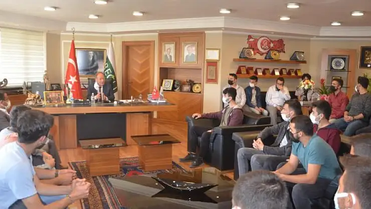 KYK Erkek Yurdu öğrencileri, Ereğli Belediye Başkanı Hüseyin Oprukçu'yu makamında ziyaret etti.