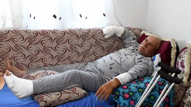 Evinde dinlenen Kıbrıs gazisi Ali Aydın, "Dün öğle saatlerinde hayvan otlatıyordum, o da kazlarını otlatıyordu orada. Ben de abdest alayım, öğle namazını ağacın altında kılayım dedim. Ağacın altında birkaç tane ördek vardı. Ona seslenip, "Namaz kılacağım, burada ördeklerin pisletmesin" deyip almasını istedim. Bana küfretmeye başladı. Elinde demir dirgen vardı, bana saplamaya geldi. Saplayamayınca vurmaya başladı. Kendimi korudum ve bu hale geldim. Orada olay yatıştı, hanımı geldi, ikinci kez vurmaya başlayınca bacağım kırıldı. Ondan şikayetçiyim" diye konuştu.