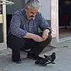 İş yeri önünde kendisine alıştırdığı güvercinleri elleriyle beslemeye devam ettiğini söyleyen Mehmet Çakır, "Ben dükkanın önünde otururken bisküvi yiyordum. O sırada güvercinler benim yanıma gelmeye başladı. Güvercinlerden bir tanesi herhalde paçalıya benziyor. Çünkü ele alışmış. Belki de sahipli ama kimindir onu bilmiyorum. Sonra her saat başı sesime alıştıklarından olsa gerek ikisi birden dükkanın önüne gelmeye başladı. Çünkü çağırdığım zaman yanıma geliyorlar. Ben de onlar da dükkan önünde oldukça elimden geldiğince doyurmaya devam ediyorum" dedi.