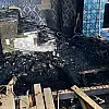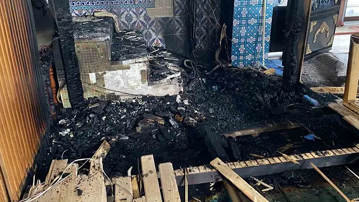 Yangın sonrası soğutma çalışmalarının devam ettiği alanda yanan malzemeler ekipler tarafından dışarı çıkartılırken, caminin müezzin bölümü ise kullanılamaz hale geldi.