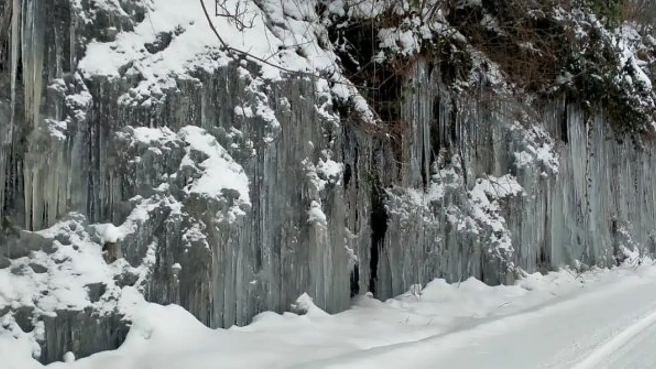 Ordu'nun Kumru ilçesinde dün gece hava sıcaklıklarının sıfırın altına düşmesi ile birlikte kayalıklar ve yollar buzla kaplandı.