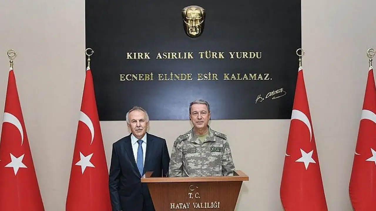 Genelkurmay Başkanlığından yapılan açıklamaya göre, Akar, beraberinde Kara Kuvvetleri Komutanı Orgeneral Salih Zeki Çolak ile Hatay Valisi Erdal Ata'yı makamında ziyaret etti.