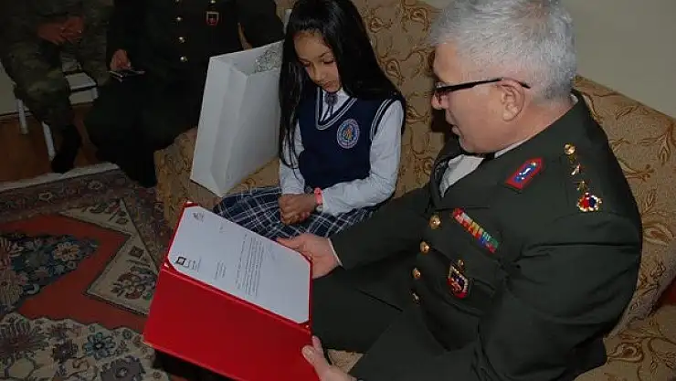 Genelkurmay Başkanı Orgeneral Özel'in küçük kıza verilmek üzere gönderdiği mektup ve hediyeler, Elazığ Jandarma Komutanı, eşi ve Merkez İlçe Jandarma Komutanı tarafından evinde ziyaret edilen Melike Naz'a teslim edildi.