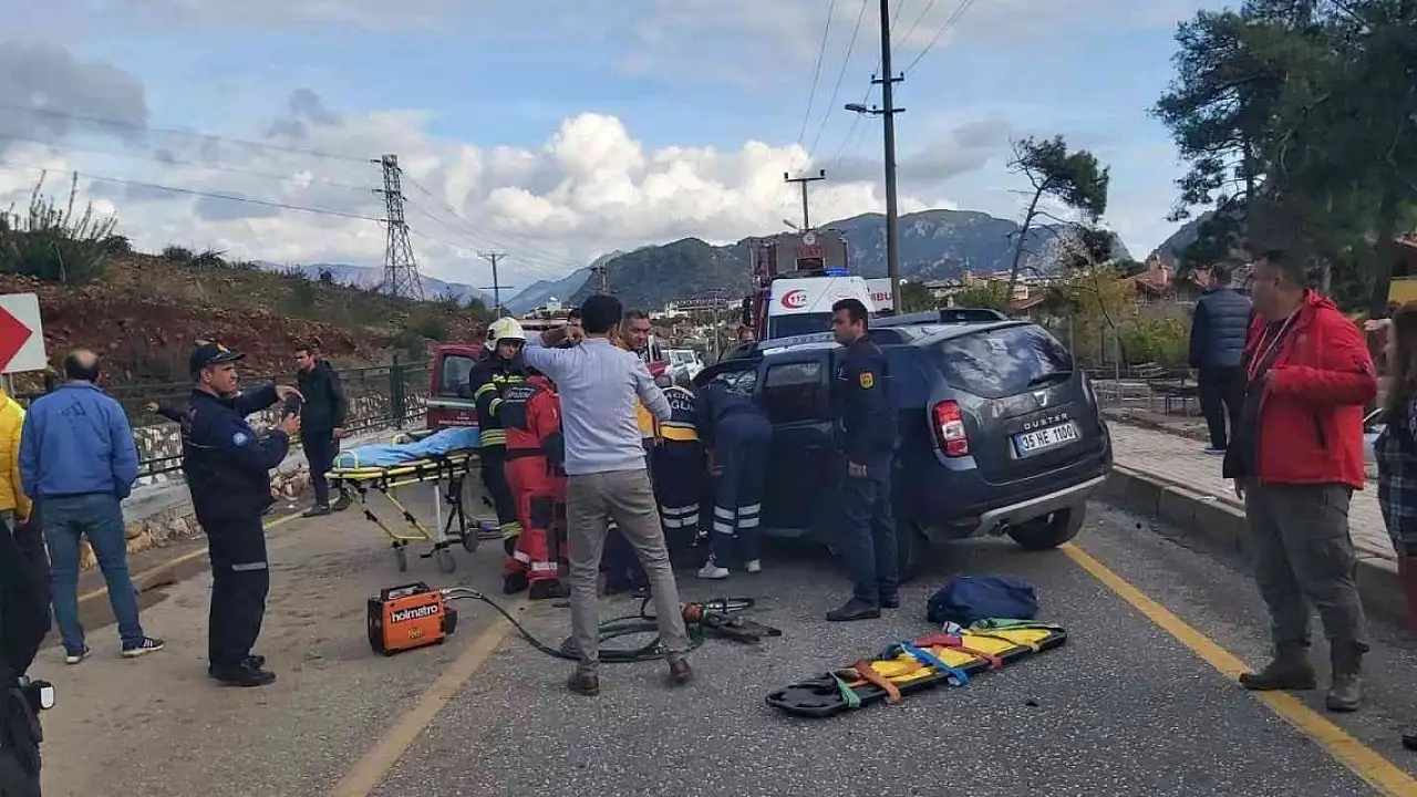 Kaza, Marmaris ilçesi İçmeler Mahallesi'nde saat 14.30 sıralarında meydana geldi. Edinilen bilgiye göre M.B. idaresindeki Orman İşletme Müdürlüğü'ne ait araç, Barbaros Caddesi üzerinde seyrederken karşı şeritten gelen İ.B. idaresindeki otomobil ile çarpıştı. Çarpışmanın etkisi ile kazada 3 kişi yaralandı. Kazayı gören vatandaşlar durumu 112 Acil Çağrı Merkezi'ne bildirdi. İhbar üzerine bölgeye polis, itfaiye ve sağlık ekipleri sevk edildi. Kısa sürede bölgeye gelen itfaiye ekipleri otomobil içerisinde sıkışan sürücü İ.B.'yi kurtararak sağlık ekiplerine teslim etti.