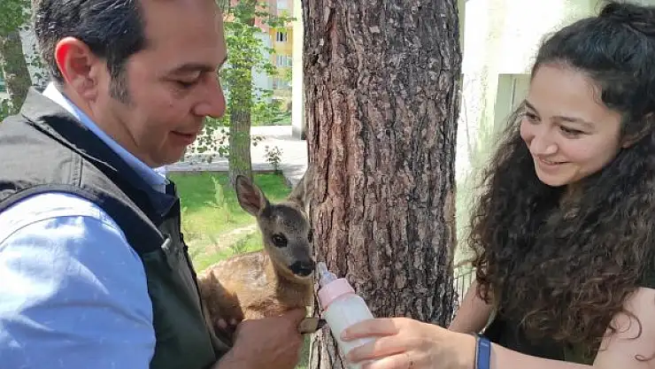 Ormancıların bitkin halde bulduğu yavru karaca beslenip doğaya salındı