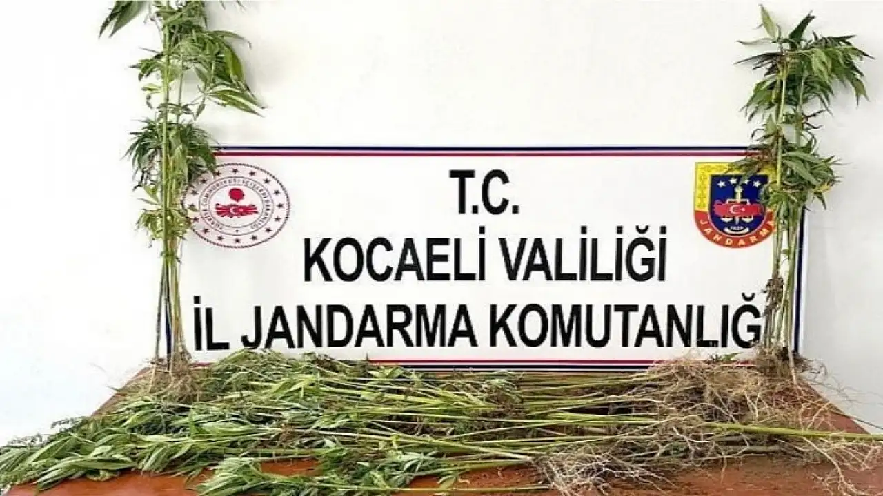 Kocaeli'de jandarma ekipleri tarafından ormanlık alanda bulunan 300 kök Hint keneviri imha edildi.